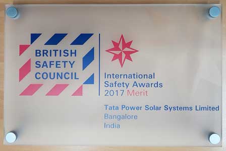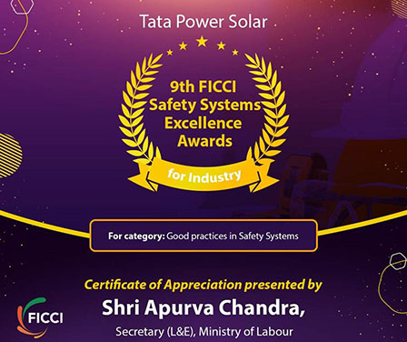 Tata Power Solar won the “Unnatha Suraksha Puraskara” award by National Safety council of India (Karnataka Chapter) for our safety performance in our operations.