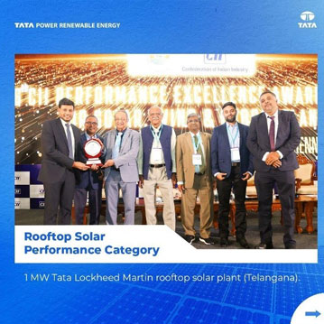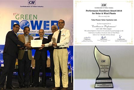 Tata Power Solar has won the ‘CII Performance Excellence award’ for Mandsaur 50MW under Solar Plant category.