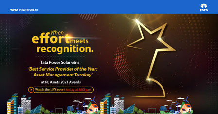 Tata Power Solar won RE Assets 2021 Award in the category of ‘Best Service Provider of the Year: Asset Management Turnkey’. Tata Power Solar got recognition for the following –