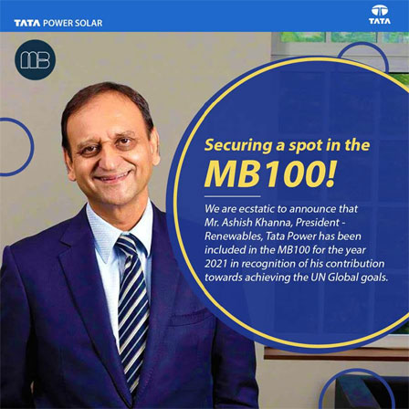 Mr. Ashish Khanna, President – Renewables, Tata Power has been featured in the third edition of @meaningfulbusiness 100 (MB100). Judged by some of the renowned personalities like Natasha Muller, Founder & CEO, NM Impact and Reto Ringger, Founder & CEO, Globalance Bank, Stasia Mitchell, Global Entrepreneurship Leader, EY, etc., this award recognizes the leaders who combine profit and purpose to help achieve the UN Global Goals. Mr. Khanna has been selected from a diverse and outstanding set of individuals including corporate CEOs, social entrepreneurs, sustainability leaders, and impact investors from over 75 countries. This international accolade is the result of his hard work and dedication towards his aim of making India a clean power-self sufficient country. https://meaningful.business/mb-100-2021/ #TataPowerSolar #Solar #Renewables #MB100