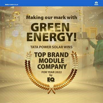 Tata Power Solar team won the “Top Brand Module Company for Year 2022” by EQ International for the world-class solar manufacturing facility at Bengaluru. EQ is a renowned media house with focus on Power Generation and Clean Energy. The award appreciate the companies who deliver excellence in energy efficiency & sustainable energy sectors in India.