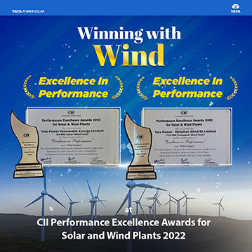 Tata Power Renewables has bagged Performance Excellence Awards 2022 by CII in 2 categories. Recognized for its EXCELLENCE IN PERFORMANCE under ‘Wind Category’ for 126MW Pratapgarh Wind Farm and for its 44MW Lahori Wind Farm.