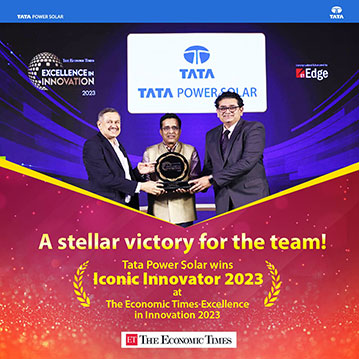 Tata Power Solar has added another feather in its cap by bagging the ‘Iconic Innovator 2023′ award at The Economic Times Excellence in Innovation. It’s a remarkable achievement that recognizes our significant contribution to project execution through exceptional innovations and technological excellence. Our Landmark projects India’s largest floating solar power project in Kayamkulam used innovation in execution by developing a scaffolding platform on the water body to make the entire solar plant float on water. The plant boasts a floating inverter platform having a 5MW capacity. The entire project is anchored to the waterbed of Kerala backwater using 134 cast pile foundations that are bored to a depth of 20 meters underwater to support the Central Monitoring and Control Stations (CMCS) and the 33/220 kilovolts switchyard.