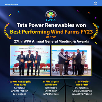 Tata Power Renewables achieved a remarkable milestone by bagging ‘Best Performing Wind Farms’ awards at the prestigious IWPA award function for the FY 2023. The recognition highlighted the company’s unwavering commitment to sustainable and efficient energy production. The award ceremony was graced by the presence of esteemed dignitaries, including Shri Bhupinder Singh Bhalla IAS, Secretary of the Ministry of New and Renewable Energy (MNRE), Government of India and Shri Dinesh Dayanand Jagdale, Joint Secretary, MNRE, Government of India.