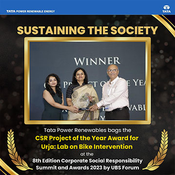 Tata Power Renewables has been awarded the prestigious CSR Project of the Year at the 8th Edition Corporate Social Responsibility Summit and Awards in 2023, hosted by the UBS Forum. The winning intervention, “Urja: Lab on Bike,” embodies our commitment to fostering educational advancement and scientific curiosity among students. This innovative intervention aims to build a strong foundation of knowledge and ignite a passion for science by offering hands-on experiential learning opportunities, inculcate problem-solving, life skills, technology, and deep learning to understand the practical aspect of STEM education. This recognition underscores the company’s commitment to work diligently towards powering transformations & enabling livelihoods.