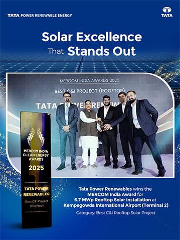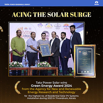 The Coveted award is presented to the company for the commitment towards encouraging solar energy across the nation. Tata Power Solar has 20,000+ residential customers served with 70+ MW installations across all 14 districts of Kerala.