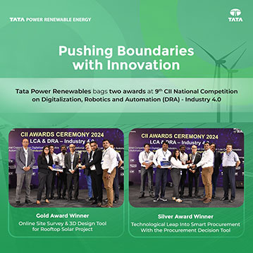 Tata Power Renewables triumphed at the 9th CII National Competition on Digitalization, Robotics & Automation (DRA) – Industry 4.0, securing Gold and Silver awards for its innovative technological advancements. The Gold award-winning project, “Online Site Survey & 3D Design Tool for Rooftop Solar Project,” aims to streamline the creation of solar project designs, ensure Bill of Materials accuracy, and enhance customer satisfaction through an optimized assessment process and immersive 3D visualization tools. The Silver award recognized the “Technological Leap into Smart Procurement with the Procurement Decision Tool,” which aids in managing wafer, cell, and module acquisitions by analyzing vendor details, market trends, and price forecasts, thereby enhancing procurement efficiency and decision-making in a volatile market.