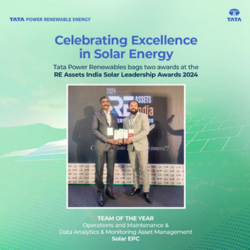 Tata Power Renewables has been recognized for its excellence in the solar energy sector, securing two prestigious awards at the RE Assets India Solar Leadership Awards 2024 in New Delhi. We are proud to have won the ‘Team of the Year’ awards in the Operations & Maintenance and Data Analytics & Monitoring Asset Management categories within the Solar EPC sector. This achievement highlights our unwavering commitment to operational excellence, data-driven decision-making, and superior asset management in renewable energy. The recognition was celebrated in the presence of over 175 industry leaders, policymakers, and key stakeholders, reinforcing our leadership in India’s solar energy landscape.