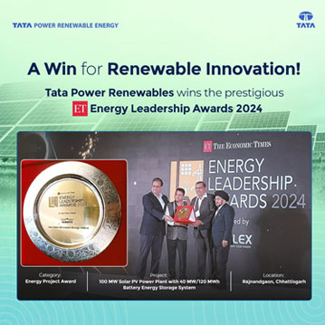 We are thrilled to celebrate another significant milestone as Tata Power Renewables is honoured with the prestigious Economic Times Energy Project Award for our ground-breaking Battery Energy Storage System (BESS) project in Rajnandgaon, Chhattisgarh. This recognition underscores our commitment to advancing clean, reliable, and sustainable energy solutions. The Rajnandgaon BESS project stands as a testament to our relentless pursuit of excellence and innovation within the renewable energy sector, helping to enhance grid stability and provide flexible energy storage solutions. By leveraging cutting-edge technology, this project plays a pivotal role in transforming the energy landscape of India, driving the transition towards a greener, more sustainable future. This award further reinforces Tata Power Renewables’ leadership in pioneering energy storage solutions and strengthening our dedication to sustainability.