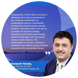 - Tata Power Renewable Energy Limited crossed 1.4 GW capacity of Group Captive Projects