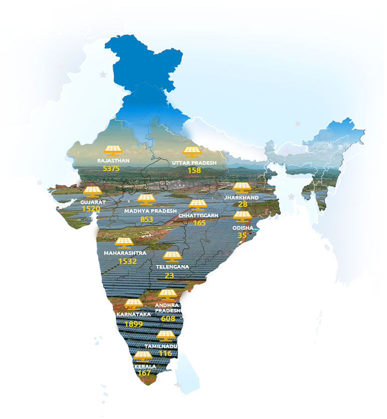 Tata Power Solar has installed over 17 utility scale solar energy projects across 14 states in India, exceeding 11.5 GWp. We have a wealth of experience in managing utility scale projects with insight into what it takes to work within the demands of regulatory policies and varying geographies, both in urban and rural areas.