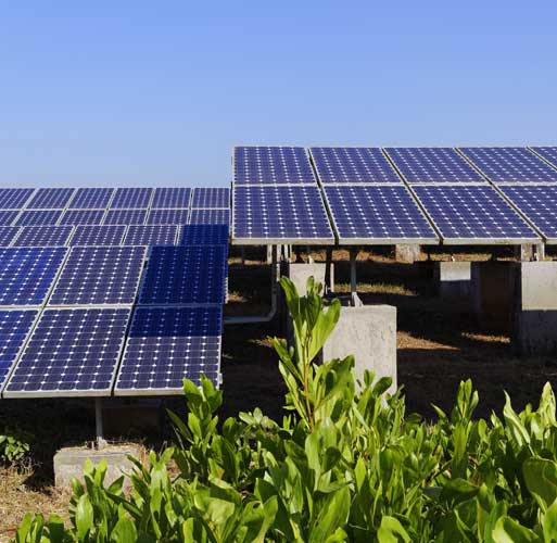 The Solar PV power plant's design involved erecting arrays of pedestals that ensured shadow free spacing between arrays of modules, while guaranteeing that the natural water channel was not disrupted during the ground mounting process.